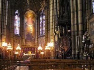 Cette église gothique du 16ème siècle avec son intérieur baroque met l’accent sur