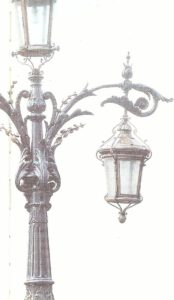 In het kader van de verfraaiingswerken voor het Rubensjaar 1877 krijgt de ganse tuin aan de straatzijde een sierlijke hardstenen balustrade. Daarop staan de oudste en mooiste straatlantaarns van heel de stad. De tweearmige koperen lantaarns dateren dus nog uit de eeuw waarin de stadsverlichting op gas werd ingevoerd. Het ‘lichtend voorbeeld’ hierbij is de illustere ‘Lichtstad’ Parijs oftewel ‘La Ville Lumière’, waar men al vanaf 1820 met de openbare gasverlichting een aanvang had gemaakt.