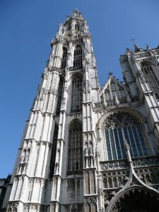 Wanneer Peter de Grote Antwerpen bezoekt in 1717 wil hij de hoogte van de toren nameten. Vandaag zeggen we dat hij 123 meter hoog is, maar in 1717 zei men dat uiteraard niet. Men mat toen nog in voeten – Antwerpse voeten. Want de maten verschilden van stad tot stad… De Antwerpse voet mat 28,50 cm; de Brusselse 27,50 cm (de Franse 32,50 cm). Voor de Antwerpenaar was de toren dus 432 voet hoog. Peter de Grote werd in zijn rijk geconfronteerd met hetzelfde probleem dat hier heerste, nl. dat maten van stad en streek verschilden. Vandaar dat hij een uniform maatstelsel heeft ingevoerd, zoals de Fransen eind 19de eeuw deden met het metriek stelsel. Als basis nam hij de “arshin”, een armlengte, die gelijk is aan 71,12 cm. Hij zal dus ontdekt hebben dat de toren 173 arshin hoog is.